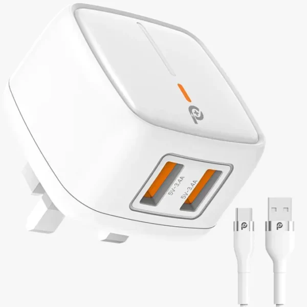 شاحن Powero+ بريطاني بقوة 12 وات مع كابل USB A إلى Type C