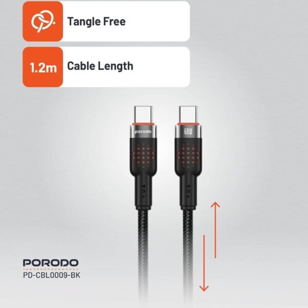 كابل ألومنيوم مضفر من بورودو USB-C إلى USB-C بطول 1.2 متر شحن سريع PD بقوة 60 وات , اسود